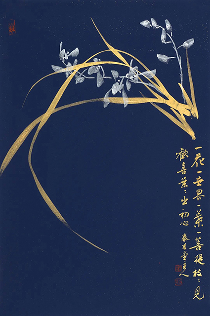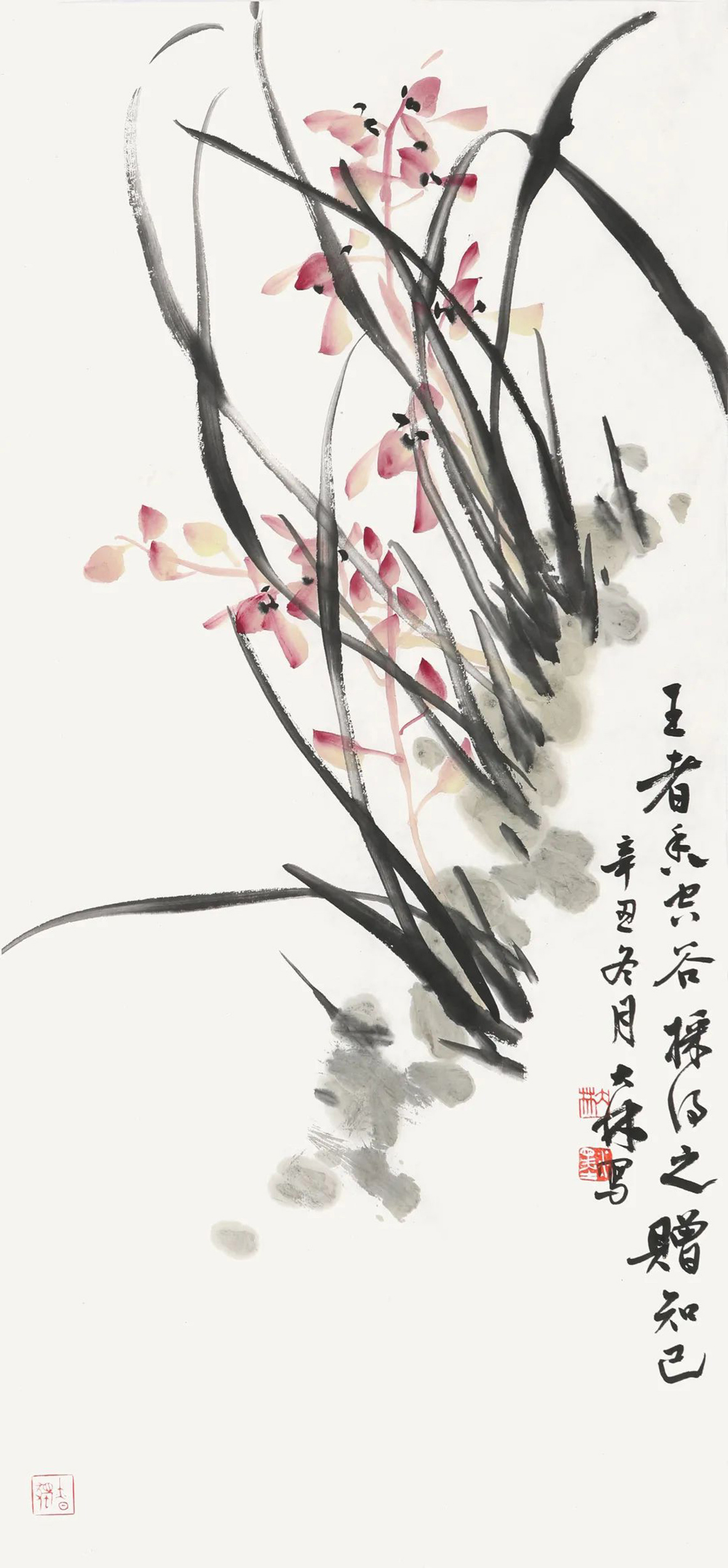 而率真,很好地表達(dá)了蘭的意味。觀大林的作品,不僅享受了他的寫(xiě)蘭藝術(shù),吮吸了滿紙?zhí)m氣,也欣賞到了他的書(shū)法藝術(shù)。