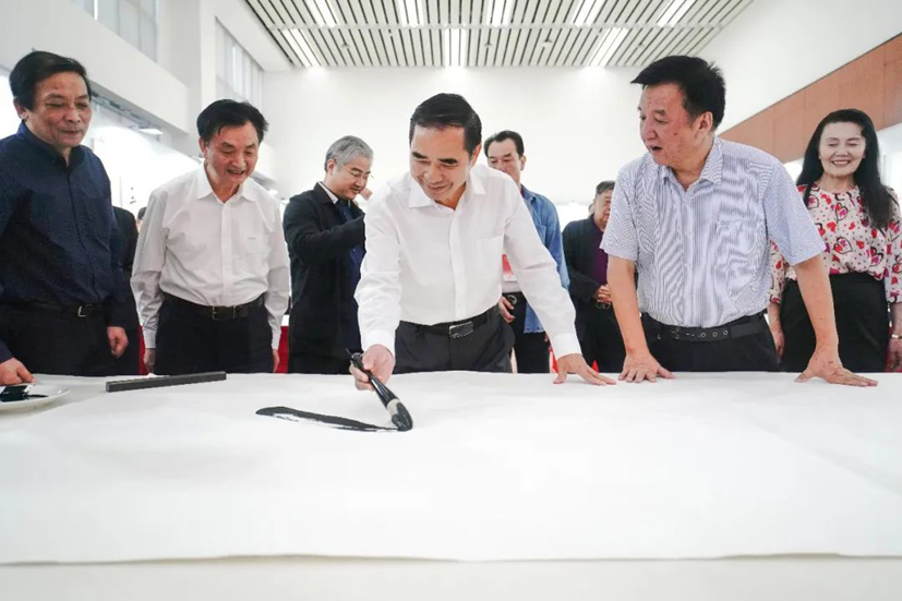 福建省人大常委會黨組成員、副主任袁毅宣布活動開幕,并與全國人大華僑委委員、省人大書畫院院長葉雙瑜,省文聯黨組成員、副主席、書記處書記、省美協主席王來文,南平市人大常委會黨組書記、主任羅志堅,南平市委副書記陳濤共同啟動本次筆會活動。