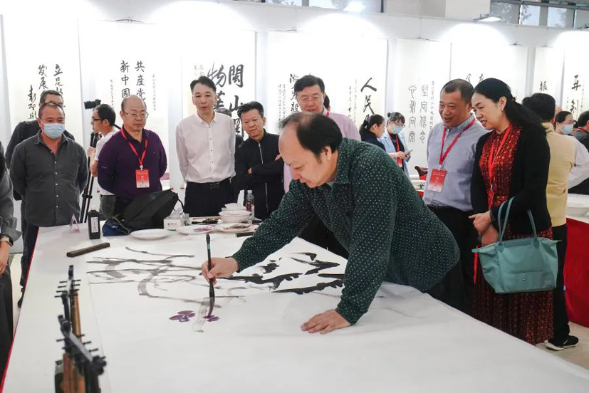 活動現場,來自全省各地的書畫藝術家分12張案桌創作。藝術家們揮毫潑墨、行云流水,用一幅幅主題鮮明、格調高雅的書畫作品,獻禮黨的二十大,表達全省人大系統團結奮進,共同推動新時代人大工作高質量發展的堅定信心和滿腔熱情。