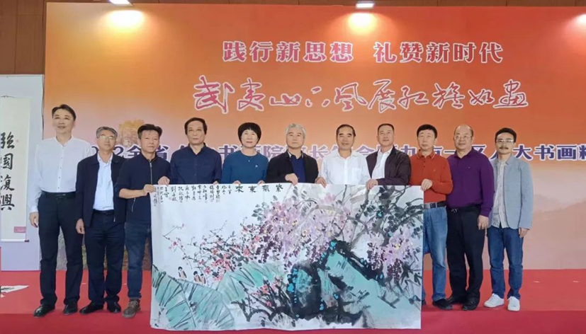 為慶祝黨的二十大勝利召開,全面貫徹落實習近平新時代中國特色社會主義思想,弘揚偉大建黨精神,全方位推進高質量發展,抒發地方各級人大及其常委會永遠跟黨走、闊步新征程的情懷。10月22日上午,由福建省人大書畫院指導,福建省文學藝術界聯合會、南平市人大常委會主辦,南平市人大書畫藝術院、南平市文旅局、南平市文聯承辦,福建省美協、福建省書協、九市一區人大書畫院共同協辦的“武夷山下風展紅旗如畫——2022全省人大書畫院院長筆會暨九市一區人大書畫精品展”在建陽舉行。