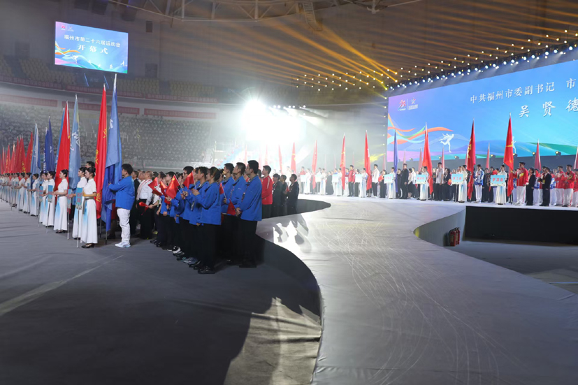伴隨著激昂的旋律,護旗手護送中華人民共和國國旗、福州市運動會會旗入場。來自12個縣(市)區和25個行業代表團方陣身著整齊服裝、邁著矯健步伐依次入場,以昂揚姿態展示新時代有福之州的朝氣蓬勃、奮發有為、開拓進取的風采。