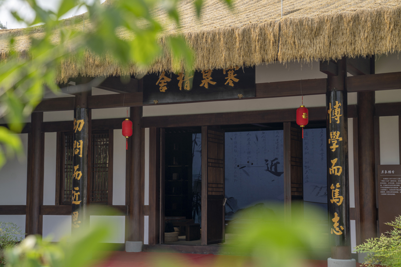 從馬伏出來向東,路邊的稻田,是被綠意侵染的詩行,水洼倒映著天光云影,一個轉角,抖落煙灰的剎那,我等便來到了位于后山鋪的“寒泉精舍”。漫步精舍內,幾間古樸的茅屋,屋頂的茅草,在陽光照耀下泛著淡淡的金色,恍惚間看到了朱子在與弟子們坐而論道,朱子的聲音沉穩而有力,墻上鑲嵌著的《近思錄》語,猶如一盞盞明燈,照亮了弟子們前行的道路。朱子墻前駐足沉思,同行的友人忽問:“爾等出生理學淵藪,何謂朱子理學,可以一語釋之乎?”。