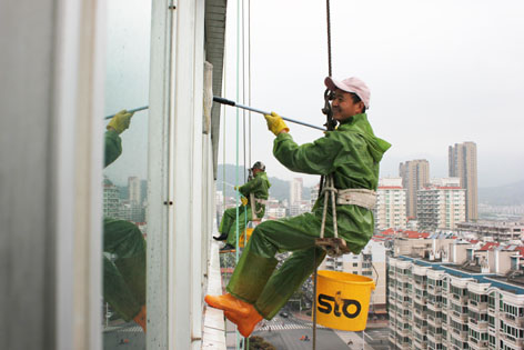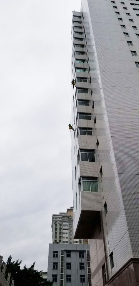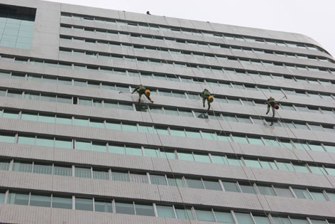 原來,都市中的高樓大廈外墻由于常年受到日曬和風(fēng)吹雨打,以及大氣中有害的氣體和油煙等污染和化學(xué)反應(yīng)的侵蝕,使得建筑物外墻產(chǎn)生了污垢和風(fēng)化,既影響了建筑物的標(biāo)致和市容,又損壞了建筑物。為了城市的整體美觀,在現(xiàn)代都市中滋生出一種新興的行業(yè)——高樓外墻清洗。這些“空中飛人”則是利用高空操作繩、安全繩、高空坐板(或吊板、吊籃等)針對(duì)大樓外墻材料進(jìn)行自上而下刷洗清潔制劑、清洗污垢灰塵的高空工作者,從事這種行業(yè)的人員必須經(jīng)過專業(yè)培訓(xùn)并頒發(fā)外墻清洗資格證才能上崗。