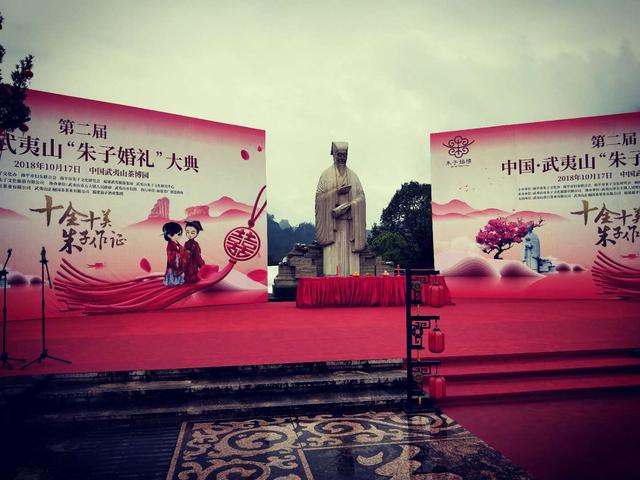 由南平市朱子文化保護建設工作領導小組辦公室、南平市婦女聯合會、南平市朱子文化研究會、福建武夷旅游集團、武夷山朱子文化研究中心聯合主辦,武夷山市朱子文化旅游有限公司承辦,武夷山市五夫鎮政府、武夷山市婦聯協辦的以“十全十美,朱子作證”為主題,選取2018年10月1日前領取結婚證的33對新人,集體舉行朱子婚禮,循古禮,復傳統,共同完成一場沿襲千年人文經典的婚禮儀式。新人嚴格遵循“朱子婚禮”中的納采禮、納幣禮、親迎禮及合巹禮四個經典環節。觀禮嘉賓與新人齊誦朱子家訓,充分感受“朱子婚禮”的人文魅力和文化底蘊。本次大典還舉行了“朱子婚禮”市級非物質文化遺產項目授牌儀式、“朱子婚禮”國家注冊商標揭牌儀式。